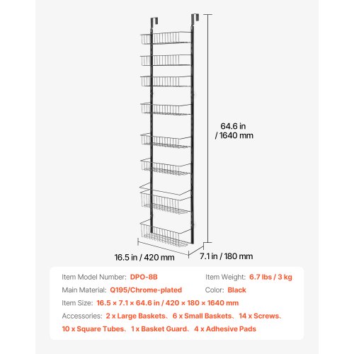 VEVOR Over the Door Pantry Organizer, 8-Tier Pantry Organization and Storage, Heavy-Duty Steel Hanging Spice Rack, Adjustable Wall Seasoning Shelves, for Home Kitchen Laundry Room Bathroom, Black