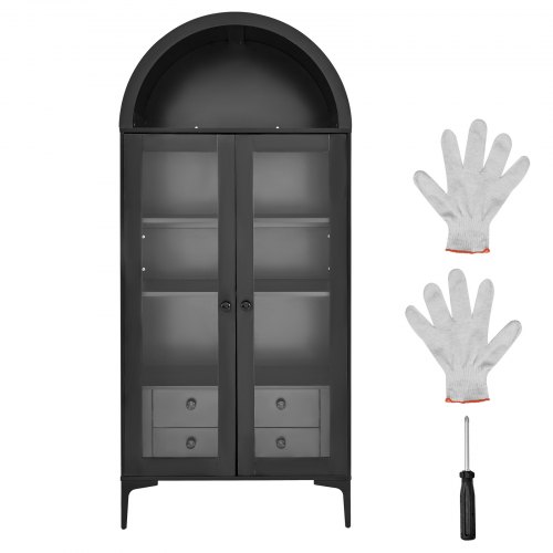 VEVOR Arched Display Cabinet with Glass Doors, 70 in Tall Curio Cabinet, 4-Tier Display Case with 2 Adjustable Shelves, Bookcase Bookshelf for Collectibles Storage Bedroom Living Room Office