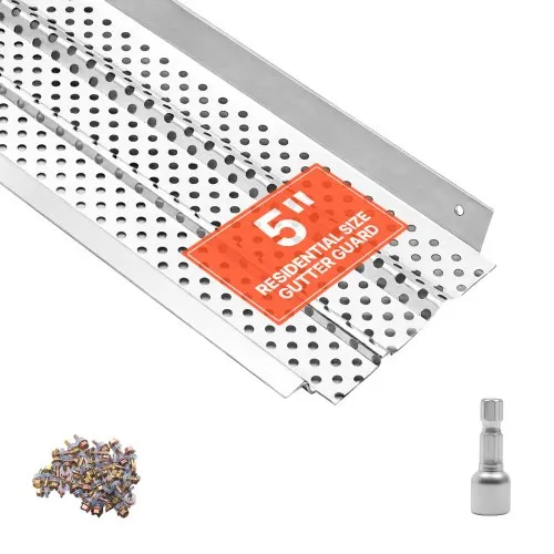 VEVOR Gutter Guard, 5 inch Width, Aluminum Leaf Filter DIY Gutter Cover, 26 PCS 104 ft Total Length, 0.157'' Hole Diameter & 0.02'' Thick Gutter Guards Fits Any Roof or Gutter Type