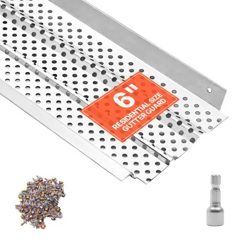 VEVOR Gutter Guard, 6 inch Width, Aluminum Leaf Filter DIY Gutter Cover, 52 PCS 208 ft Total Length, 0.157'' Hole Diameter & 0.02'' Thick Gutter Guards Fits Any Roof or Gutter Type