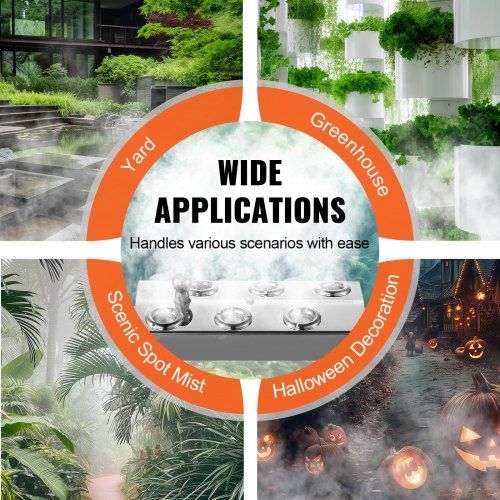 VEVOR Ultrasonic Mist Maker 6 Head, 4500mL/H Ultrasonic Fogger, Mist Maker with 165W IP67 Waterproof Power Supply, Buoy, Replacement Discs, for Pond, Garden, Rockery, Greenhouse, Halloween Decoration
