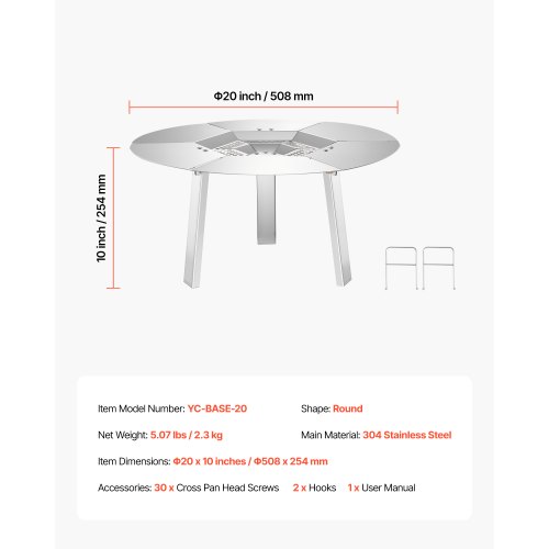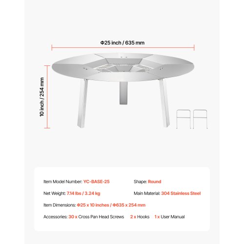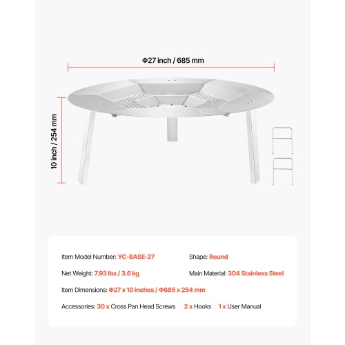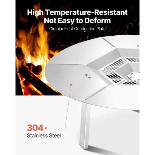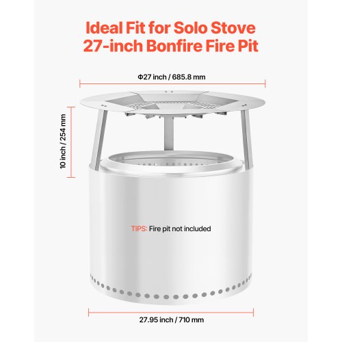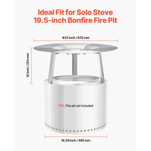 VEVOR Fire Pit Heat Deflector for Solo Stove Yukon, 27 inch Bonfire Round for Wood Burning Fire Pit, 304 Stainless Steel Heat Diffuser, Detachable Burner Cover Camping Accessories