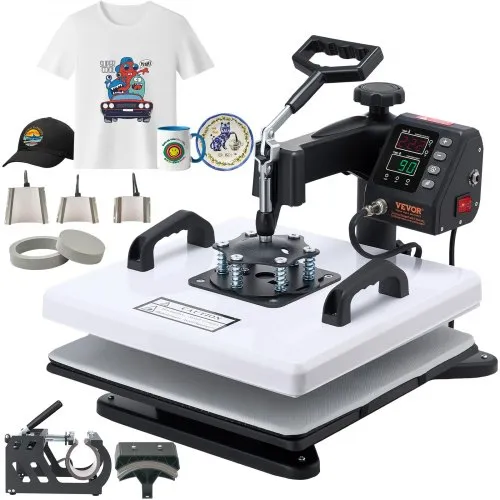 VEVOR Heat Press Machine, 15 x 15 in, 2-in-1 Multifunction, 360° Swing Away, 1200W Double Tube Fast and Even Heating, Digital Precise Control, Sublimation Press Machine for T-Shirts, Hats, Caps