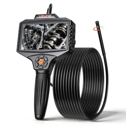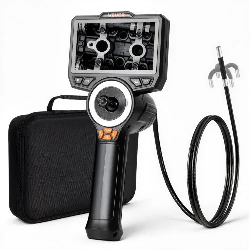 VEVOR Two-Way Articulating Borescope with Light, Inspection Camera with 0.25" Lens, 5" IPS HD Screen, Flexible Mechanic Fiber Optic Snake Scope Cam for Wall Automotive Engine Inspect-4.9FT