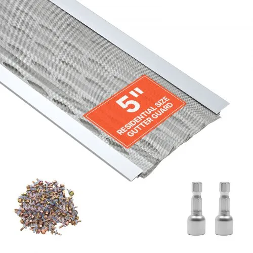 VEVOR Gutter Guard, 5 in Aluminum Gutter Cover with Stainless Steel Micro Mesh, Heavy-Duty 100ft Length, 0.04in Thick, Leaf Guard for Debris and Pine Needles, Easy DIY Install, Screws Included, 20 PCS