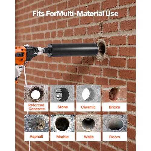 VEVOR Diamond Core Drilling Machine, 0.8-6.3 in Drilling Diameter, Handheld Dry and Wet Concrete Core Drill Rig with 4 Drill Bits, 0-1800RPM Variable Speed, UNC1 1/4-7, for Concrete Brick Stone, 2000W