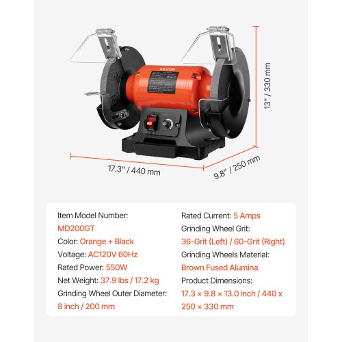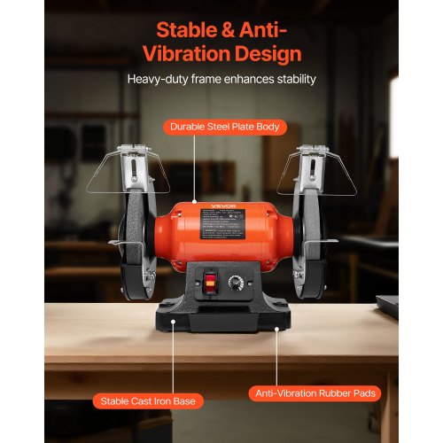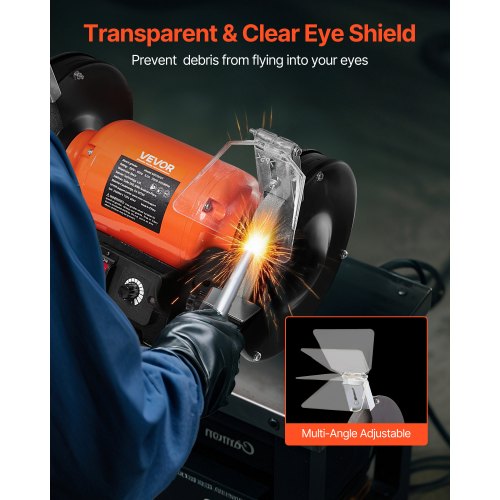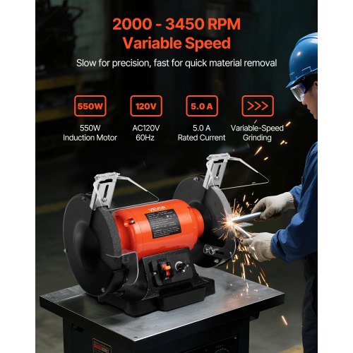 VEVOR Bench Grinder, 8-inch Variable Speed Bench Grinder, 2000-3450RPM Table Grinders with 550W 5.0A Induction Motor, 36/60-Grit Grinding Wheel & Adjustable Eye Shield for Sharpening Grinding