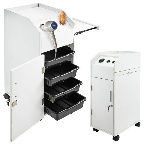 VEVOR Salon SPA Beauty Hairdressing Cart White Storage Trolley with 4 Drawers Rolling Wheels Lockable 2 Keys with Hairdryer Holder Space-Saving Side Tray