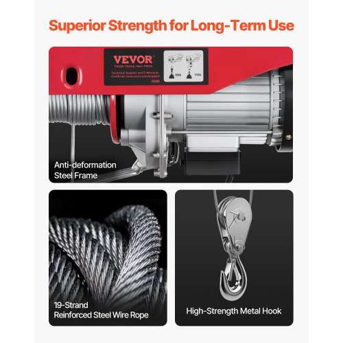 VEVOR Electric Hoist, 2200 lbs 120V Electric Winch with 328 ft Wireless & 14 ft Wired Remote Control, 40 ft Single Cable Lifting Height, Single/Double Slings, Lift Hoist for Garage Warehouse Factory