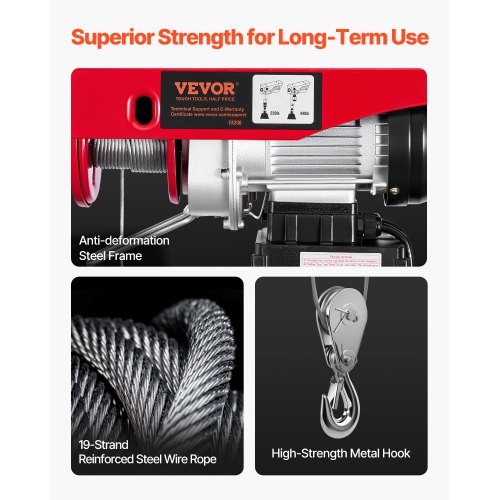 VEVOR Electric Hoist, 440 lbs 120V Electric Winch with 328 ft Wireless & 14 ft Wired Remote Control, 40 ft Single Cable Lifting Height, Single/Double Slings, Lift Hoist for Garage Warehouse Factory