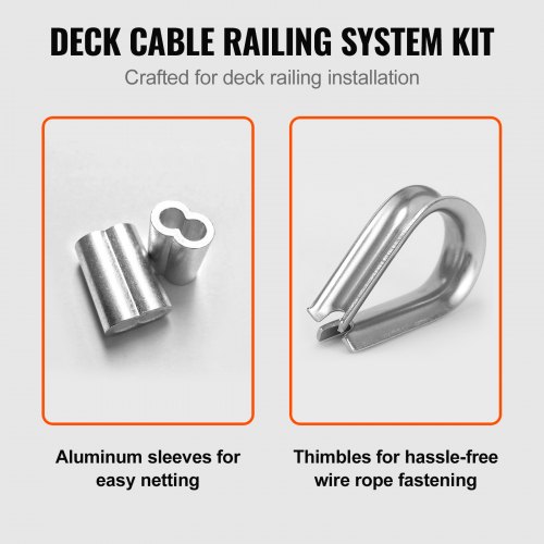 VEVOR 1/16 Wire Rope Kit, 304 Stainless Steel Cable with 80 Sleeves and 20 Thimbles, 7x7 Strands Construction Marine Aircraft Grade for Handrail Decking Garden Fence Clothes Line
