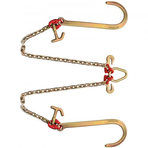 VEVOR V Bridle Chain, 5/16 in x 2 ft Bridle Tow Chain, Grade 80 V-Bridle Transport Chain, 9260 Lbs Break Strength with TJ Hooks and Crab Hooks, Heavy Duty Pear Link Connector and Chain Shorteners