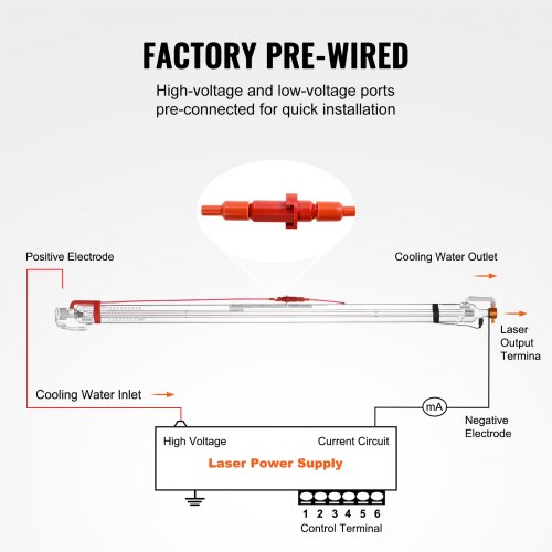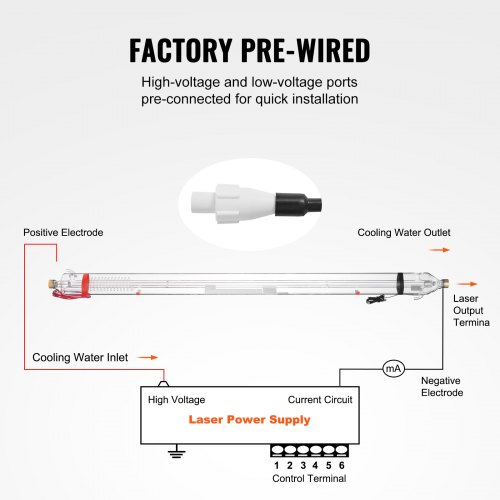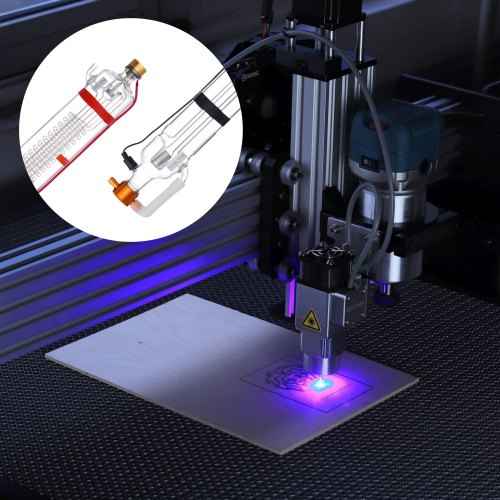 VEVOR 100W CO2 Laser Tube, 57 in (1450 mm) Length, 3.1 in (80 mm) Dia Borosilicate Glass Laser Cutter Tube with Metal Head, 10,000hr Wires Preconnected for Laser Engraver Engraving Cutting Machine