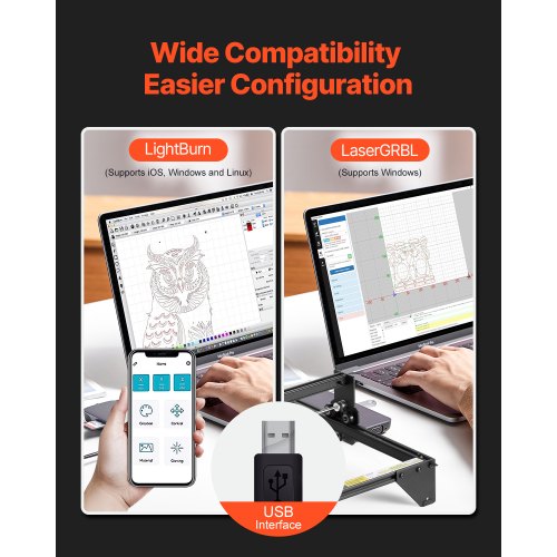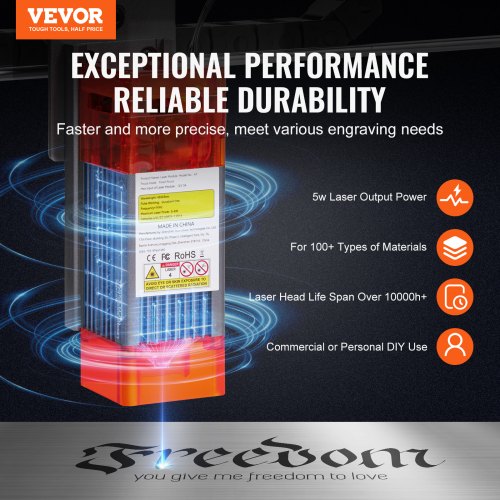 VEVOR Laser Engraver, 5W Output, Laser Engraving Cutter Machine, 14.9 x 15.7 in/38 x 40 cm Working Area, 10000 mm/min Movement Speed, Compressed Spot with Eye Protection, for Wood, Certain Metal