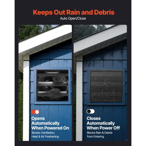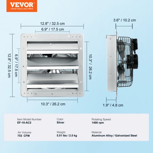 VEVOR 10'' Shutter Exhaust Fan, High-speed 820 CFM, Aluminum Wall Mount Attic Fan with AC-motor, Ventilation and Cooling for Greenhouses, Garages, Sheds, Shops, FCC