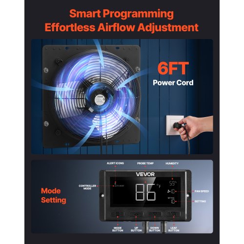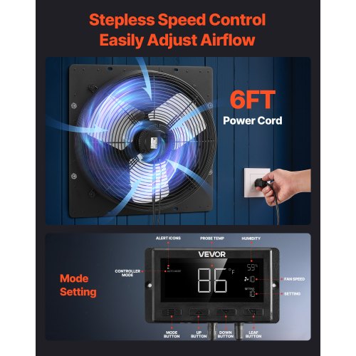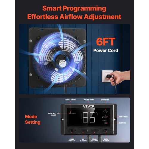 VEVOR 16 inch Shutter Exhaust Fan, Wall Mounted Attic Vent Fan with Smart Programming Variable Speed Temperature Control, 2900 CFM,EC Motor,Timer, for Shed,Garage,Greenhouse Ventilation Cooling,Black