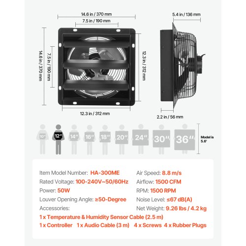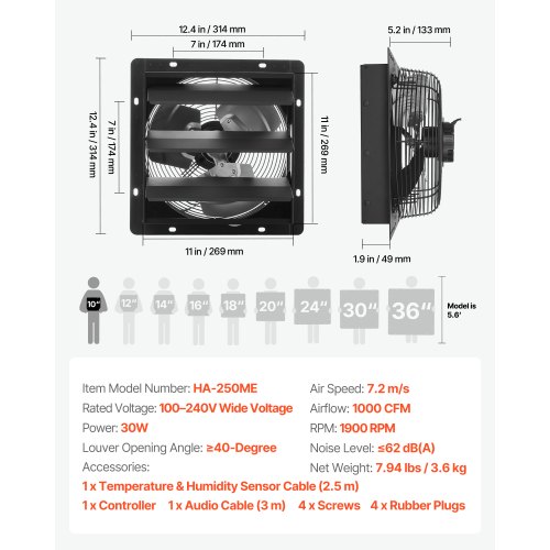 VEVOR 10 inch Shutter Exhaust Fan, Wall Mounted Attic Vent Fan with Smart Programming Variable Speed Temperature Control, 1000 CFM,EC Motor,Timer, for Shed,Garage,Greenhouse Ventilation Cooling,Black