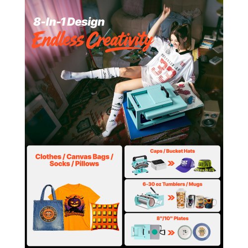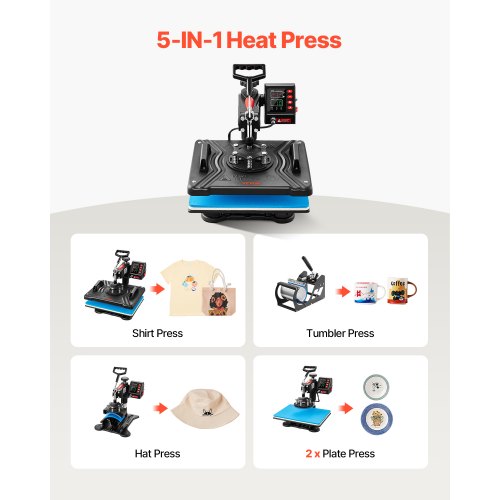 VEVOR Heat Press Machine 8 in 1 Combo, Heat Press 15x15 in, Swing Away T Shirt Printing Machine Digital Control, Multifunction Transfer Machine Sublimation, for T-Shirt Hat Cap Mug Plate, Blue