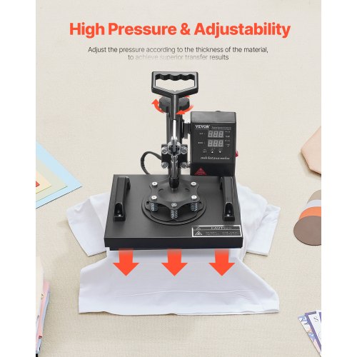 VEVOR Heat Press Machine 8 in 1 Combo, Heat Press 15x15 in, Swing Away T Shirt Printing Machine Digital Control, Multifunction Transfer Machine Sublimation, for T-Shirt Hat Cap Mug Plate, Black