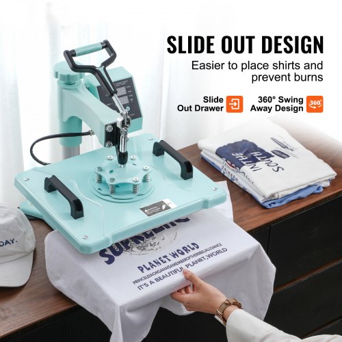 VEVOR Heat Press Machine 15x15 in Slide Out Heat Transfer Machine T-Shirts Green