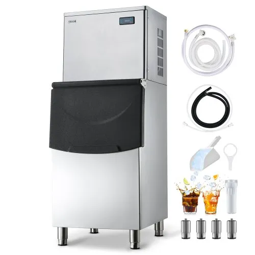 VEVOR 160lbs/24H Commercial Ice Maker Machine, 66lbs Storage Capacity Ice Maker with Drain Pump, 80 Ice Cubes in 15 Minutes, LED Digital Display Freestanding Self-Cleaning for Bar Office Restaurant