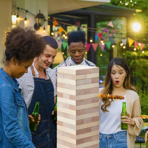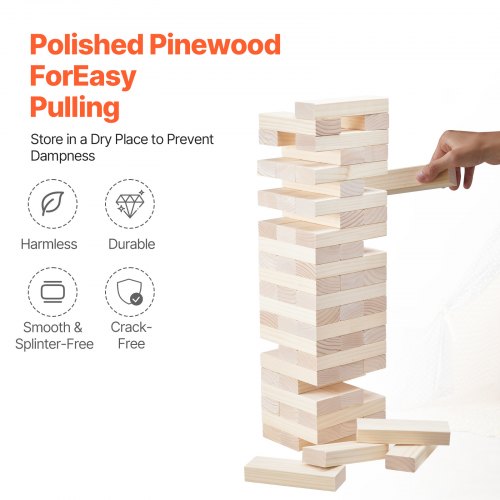 VEVOR Tumbling Timber Toy, 54 Blocks Tumble Tower Blocks Game, Pine Wood Tumbling Tower Game with Storage Crate, Wooden Stacking Game for 1 or More Players, Tumble Tower Family Game for Indoor/Outdoor
