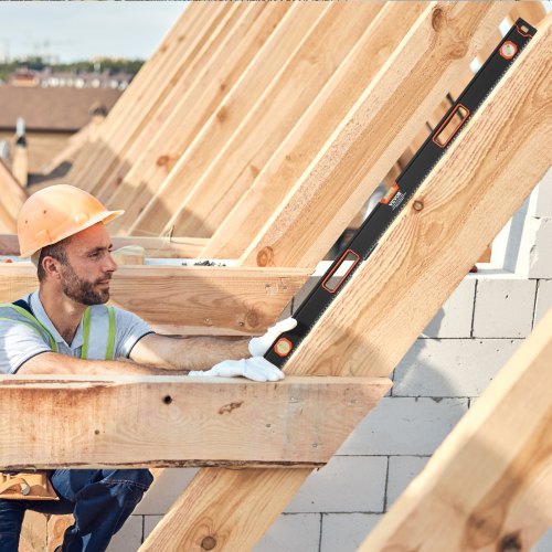 VEVOR 4-Piece Torpedo Level, 48/24/16/10 Inch Box Levels Set, Fluorescent Light Up Bubble Vials Ruler for 45/90/180 Degree, Aluminum Alloy Magnetic Leveler Tool, Shock-Proof(Only 10-inch has magnetic)