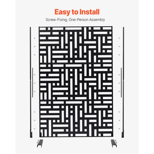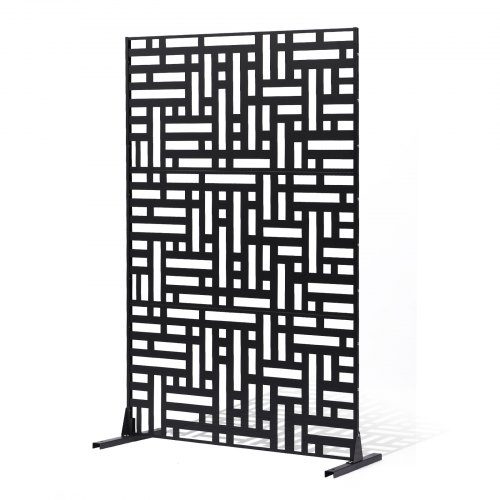 VEVOR Metal Privacy Screen, 47" W x 72" H, Outdoor Privacy Screens 5-Panel, Freestanding Outdoor Divider with Stand, Decorative Garden Steel Privacy Fence for Balcony Patio Indoor Room Black