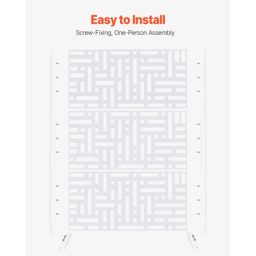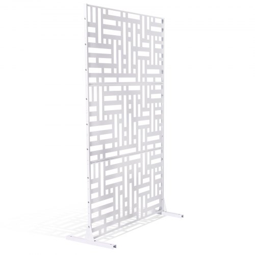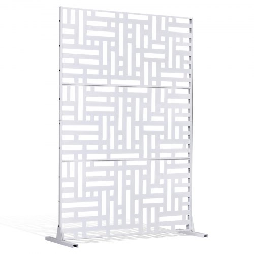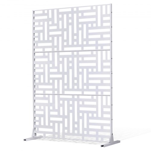 VEVOR Metal Privacy Screen, 47" W x 76" H Outdoor Privacy Screens 3-Panel, Freestanding Outdoor Divider with Stand, Decorative Garden Steel Privacy Fence for Balcony Patio Indoor Room Hot Tub White