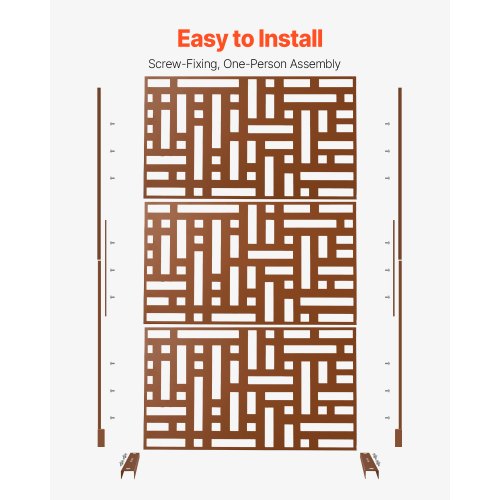 VEVOR Metal Privacy Screen, 36" W x 72" H, Outdoor Privacy Screens & Panels, Freestanding Outdoor Divider with Stand, 3-Panel Decorative Garden Steel Privacy Fence for Balcony Patio Indoor Room Brown