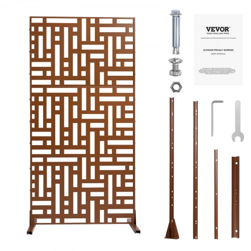 VEVOR Metal Privacy Screen, 47" W x 76" H, Outdoor Privacy Screens 3-Panel, Freestanding Outdoor Divider with Stand, Decorative Garden Steel Privacy Fence for Balcony Patio Indoor Room Hot Tub Brown