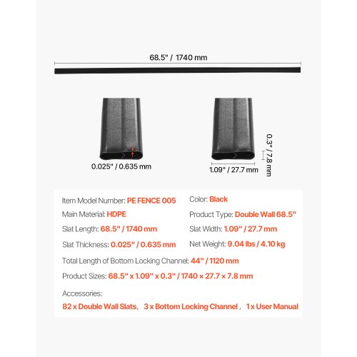 VEVOR Bottom Locking Privacy Slats, Single-Wall Vertical Bottom-Locking Slats for Chain-Link Fence, High-Density HDPE Chain Link Slats Ideally Fit 5' High Fence for Garden, Farm, Sports Field(Green)