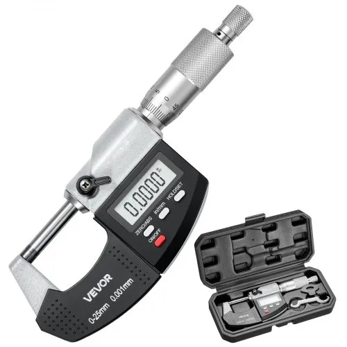 VEVOR Micrometer Set, Digital Outside Micrometer 0-1 inch Measuring Range, 0.00005" Resolution, Ultra-Precision 0.0001 Accuracy, LCD Screen, in/mm Switch, Carbide Tip, with Protective Case