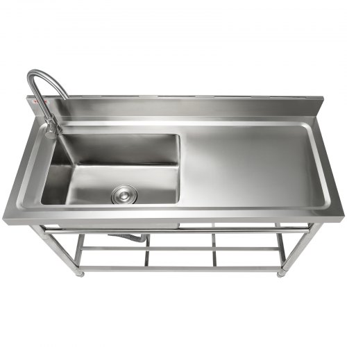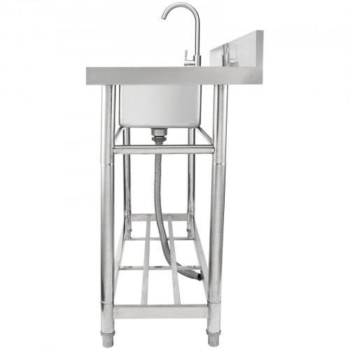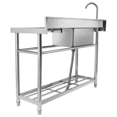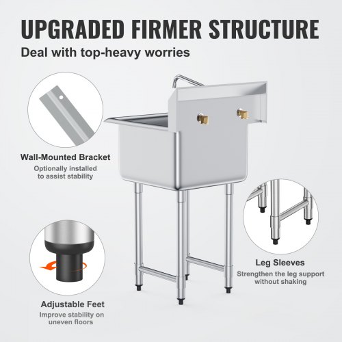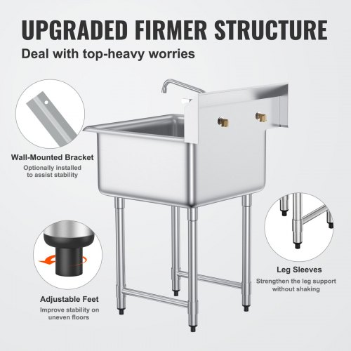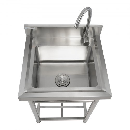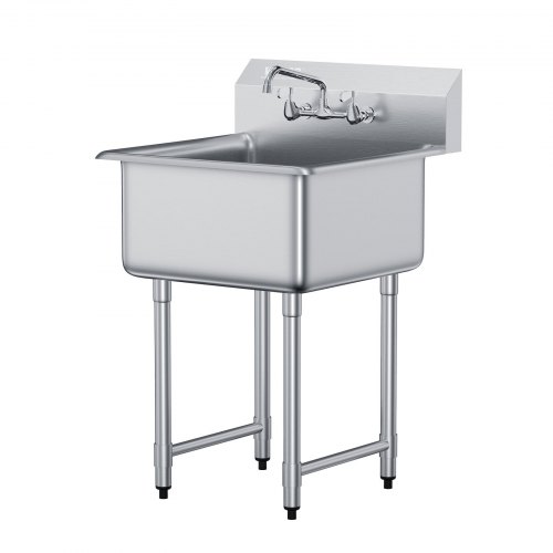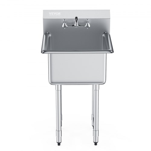 VEVOR Stainless Steel Utility Sink, 1 Compartment Free Standing Small Sink w/Workbench Faucet & legs, 39.4 x 19.1 x 37.4 in Commercial Single Bowl Sinks for Garage, Restaurant, Laundry
