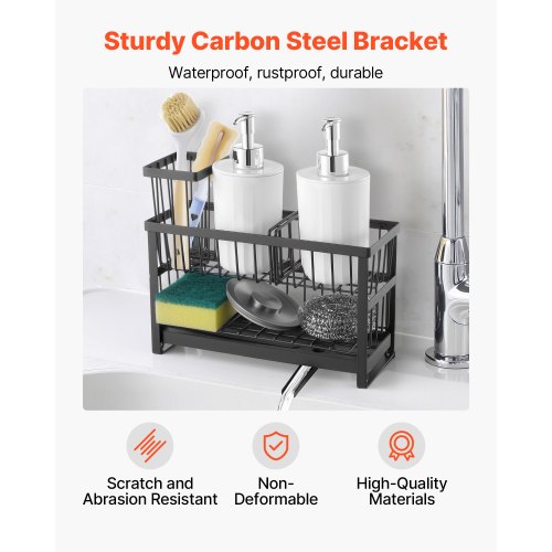 VEVOR Soap Dispensing Dish Brush, Kitchen Scrub Brushes with 3 Brush Heads, Dish Cleaning Brushes with PP Handle and Curved Bristles, Ideal for Pots, Pans, Sink and Stove