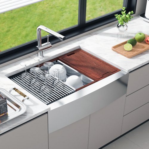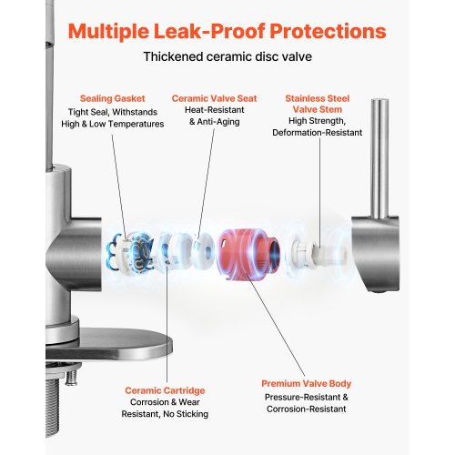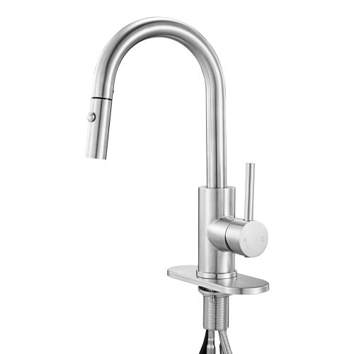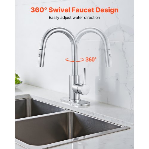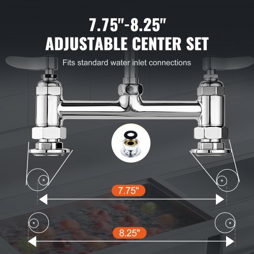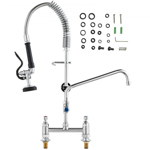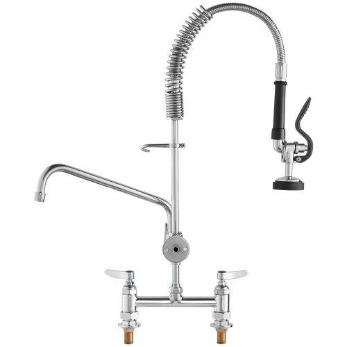 VEVOR Wall-Mounted Brass Kitchen Faucet, 36" Tall, 8" Installation Width, Includes 12" Rotating Spout and Pull-Down Sprayer, Suitable for Single, Double, or Triple Sinks