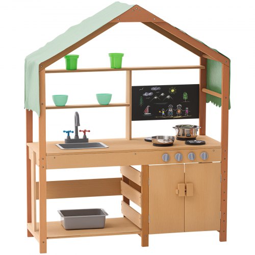 VEVOR Corner Wooden Play Kitchen, Toy Set with Lights and Sounds, Toddler Kitchen with Ice Maker, Oven, Sink, Clock, Microwaves, Refrigerator and Accessories, for Toddlers, Preschoolers, Brown