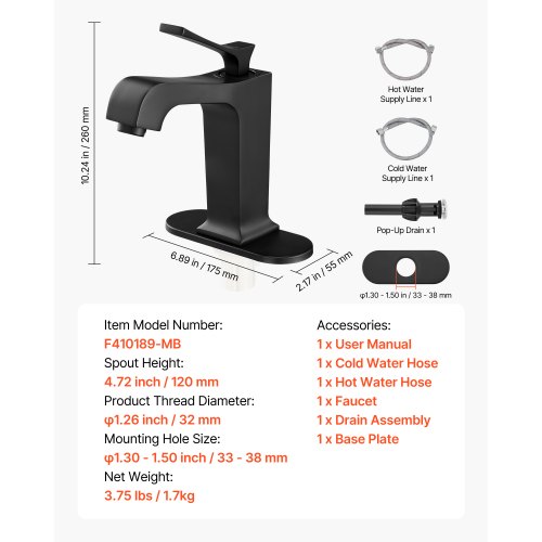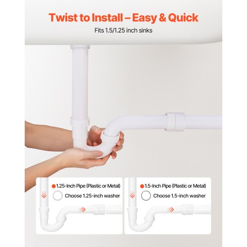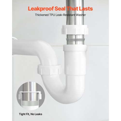 VEVOR P-Trap, 1-1/2 Inch P Trap Sink Drain Pipe Kit with Threaded Adapter and TPU Leak-Resistant Washers, PP Plastic Pipe Basin Waste Kit, Under Sink Plumbing for Kitchen Bathroom Sewer Drain, White