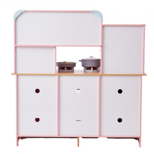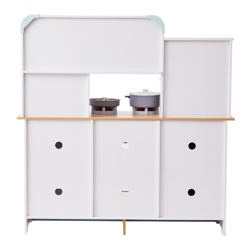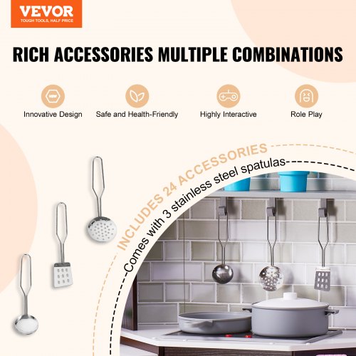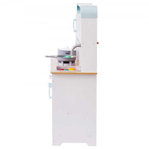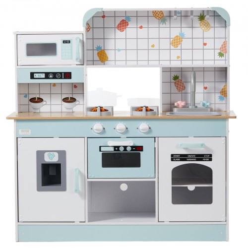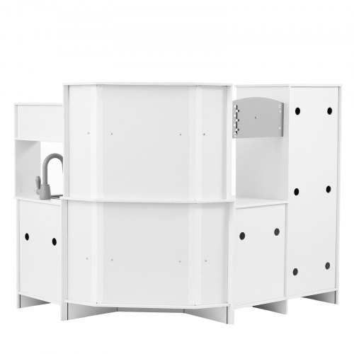 VEVOR Corner Wooden Play Kitchen, Toy Set with Lights and Sounds, Toddler Kitchen with Ice Maker, Oven, Sink, Clock, Microwaves, Refrigerator and Accessories, for Toddlers, Preschoolers, White