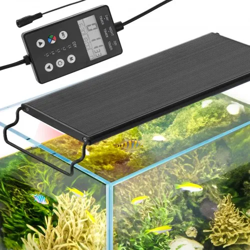 VEVOR Aquarium Light with LCD Monitor, 14W Full Spectrum Fish Tank Light with 24/7 Natural Mode, Adjustable Brightness & Timer - Aluminum Alloy Shell Extendable Brackets for 12"-18" Freshwater Tank