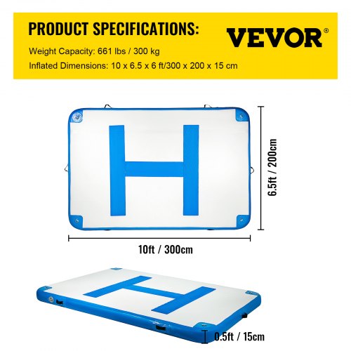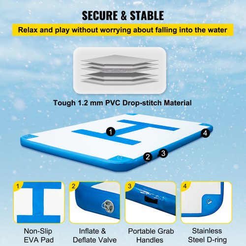 VEVOR Inflatable Floating Dock 10 x 6.5 ft, Inflatable Dock Platform with Electric Air Pump, Inflatable Swim Platform 6 Inch Thick, Floating Dock 5-6 People, Floating Platform for Pool Beach Ocean