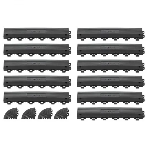 VEVOR Transition Edge Kit, 11-Piece, Durable PP Interlocking Modular Garage Floor Edging, Easy Installation, Edge Protection for Wet Area Restaurant, Only Compatible with VEVOR Drainage Mats, Black