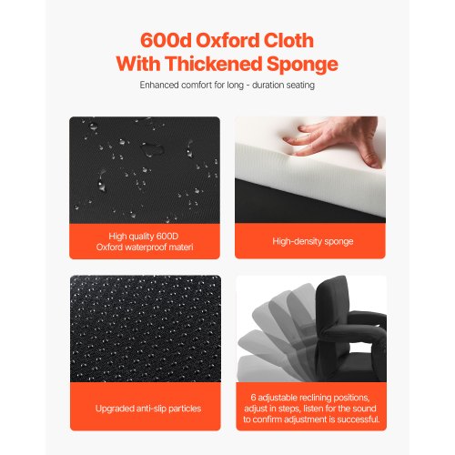 VEVOR Stadium Seat with Back Support, Wide Bleacher Seat Back, Folding Padded Cushion Stadium Chair, Portable Reclining Chair with Hook Pocket Cupholder, Ideal for Sport Event Beach Camping Concert