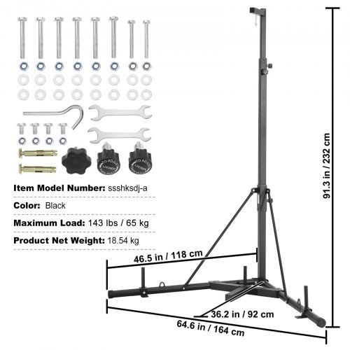 VEVOR Punching Bag Stand, Steel Heavy Duty Workout Training Equipment, Adjustable Height Boxing Punching Stand with Weighted Base, Holds Up to 143 lbs, Freestanding Sandbag Rack for Home Gym Fitness
