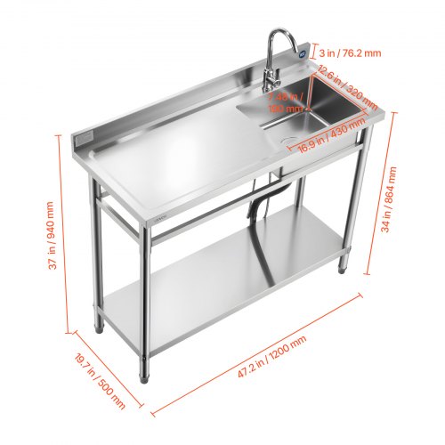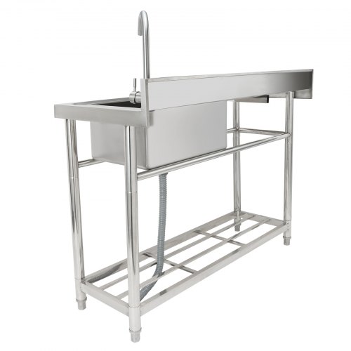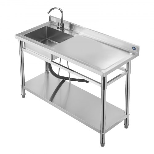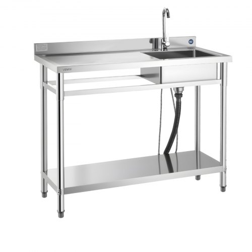 VEVOR Stainless Steel Utility Sink, Free Standing Single Bowl Commercial Kitchen Sink with Faucet, Utility Left Basin Workbench with Hot & Cold Water Pipe for Garage Restaurant Laundry, 47x19.7x37 in