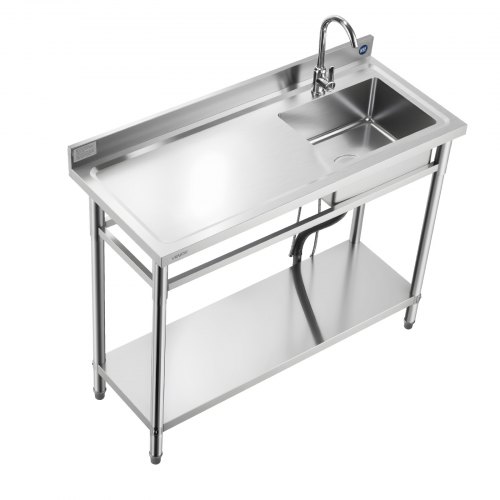 VEVOR Stainless Steel Utility Sink, Free Standing Single Bowl Commercial Kitchen Sink with Faucet, Utility Right Basin Workbench with Hot & Cold Water Pipe for Garage Restaurant Laundry, 47x19.7x37 in