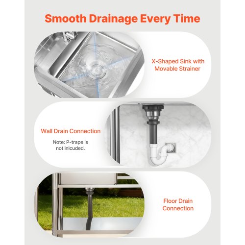 VEVOR Stainless Steel Prep & Utility Sink, 1 Compartment Free Standing Small Sink Include Faucet & legs, 27"x41" Commercial Single Bowl Sinks for Garage, Restaurant, Kitchen, Laundry