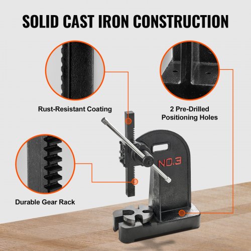 VEVOR Arbor Press, 3 Ton Ratchet Type Arbor Press, Ratchet Leverage Arbor Press with Handwheel, 12.2" Maximum Height, Cast Iron Manual Desktop Punch Press, for Stamping, Bending, Stretching, Forming