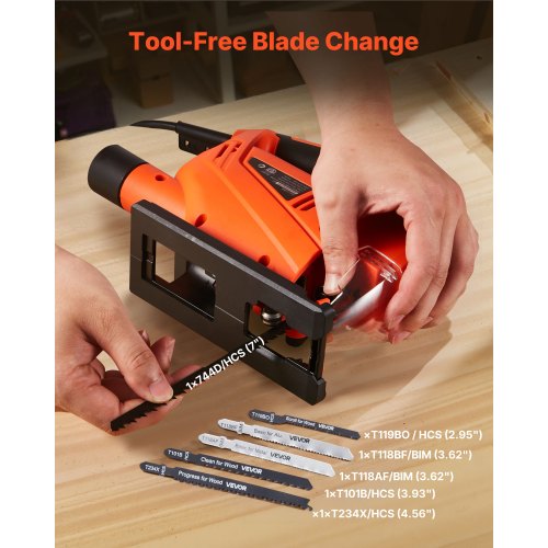VEVOR Cordless Jig Saw, 20 V Brushless Motor, 3500 SPM Blade Speed, Cordless Jigsaw with 6 pcs Blades, LED Light, 6 Variable Speed, 0- 45° Bevel Cuts, 4 Orbital Settings for Straight/Circle Cutting
