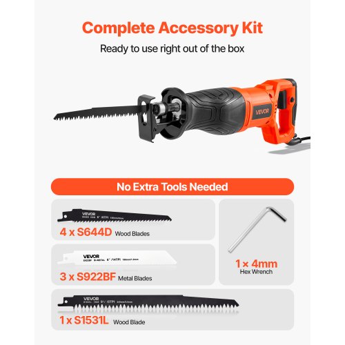 VEVOR Cordless Band Saw, 5-Inch Cut Capacity, Variable Speed, Handheld, 10A Motor, for Metal, Wood, Tubing, Pipes, Rebar, Plastic